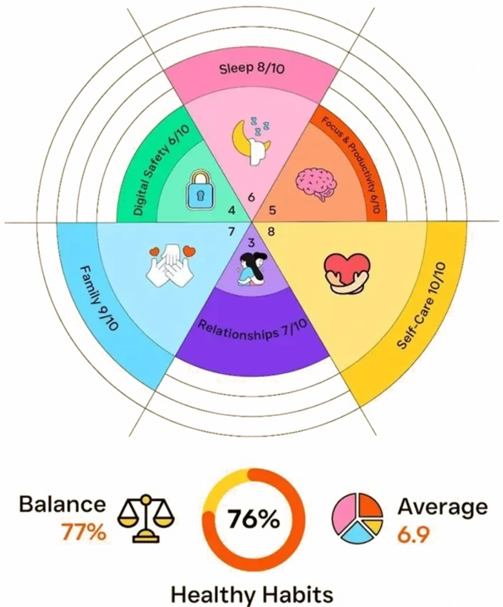 Raising kids in the digital age isn’t just about managing screen time - it’s about teaching habits that support a balanced, healthy life. LiVELY focuses on six key areas of life - focus & productivity, self-care, family time, relationships, sleep and digital safety - so your child learns the skills to thrive both online and offline. The wheel makes it simple: you’ll see their balance build, one habit at a time.